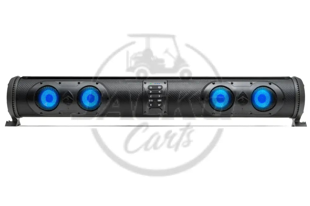 The 32" SoundExtreme powersports sound bar with 360 degree sound and LED lighting system is perfect for your ATV/UTV, boat, and golf cart. 100% waterproof, dustproof, and dirtproof. 500 watts of power to 11 marine grade speakers provides a great listening experience. With our EcoCast feature connect up to 100 Sound Extremes at a time! Protected under patents US 9,307,307, 11,223,886 , D937244