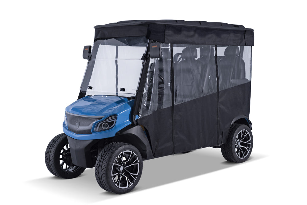 Roll-Up Design – Panels easily roll up and secure when you want fresh air or an open cart experience.