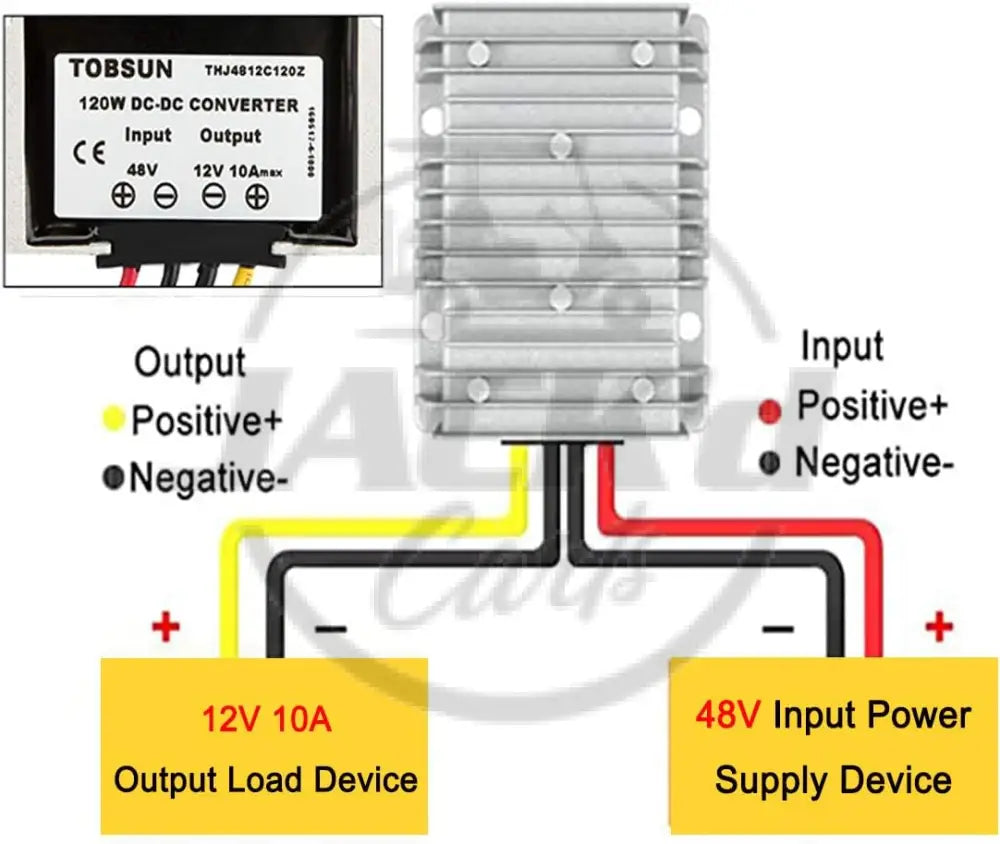 - Input Voltage: 48V nominal, Input range: 40V to 60V ; Output Voltage: DC 12V 10A 120W