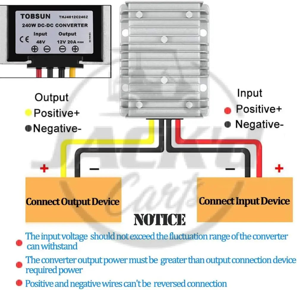 BZONE DC to DC Voltage Reducer Step Down Waterproof Voltage Regulator Buck Converter for Golf Cart Club Car (48V to 12V 20A)