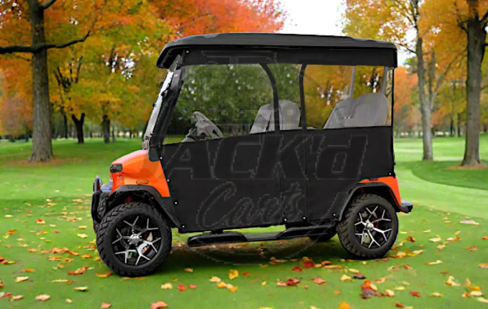 -Curved zippered door openings for easier entry and exit from the cart.