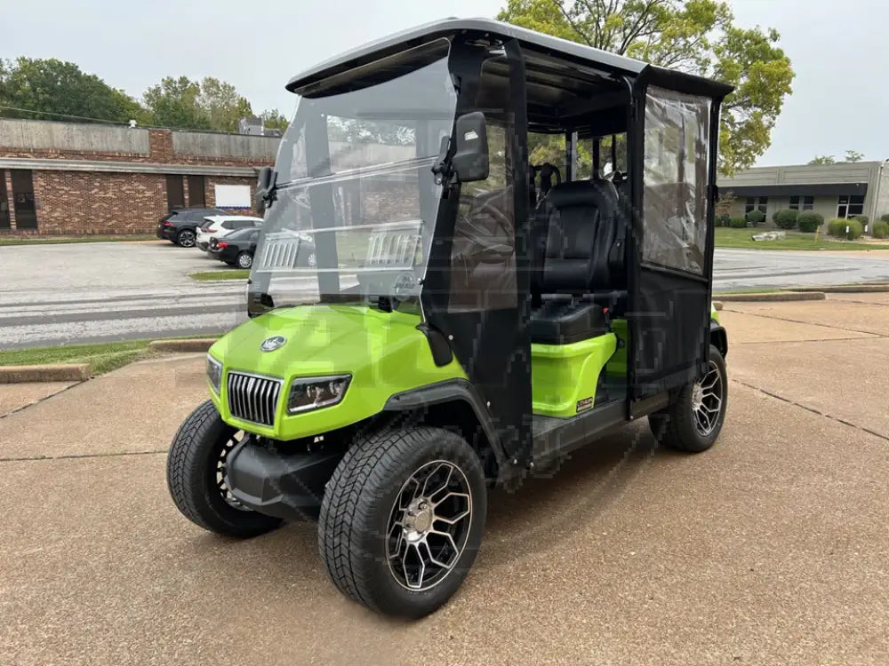 Upgrade your golf cart experience with the ultimate in passenger comfort and protection with a hinged door enclosure.
