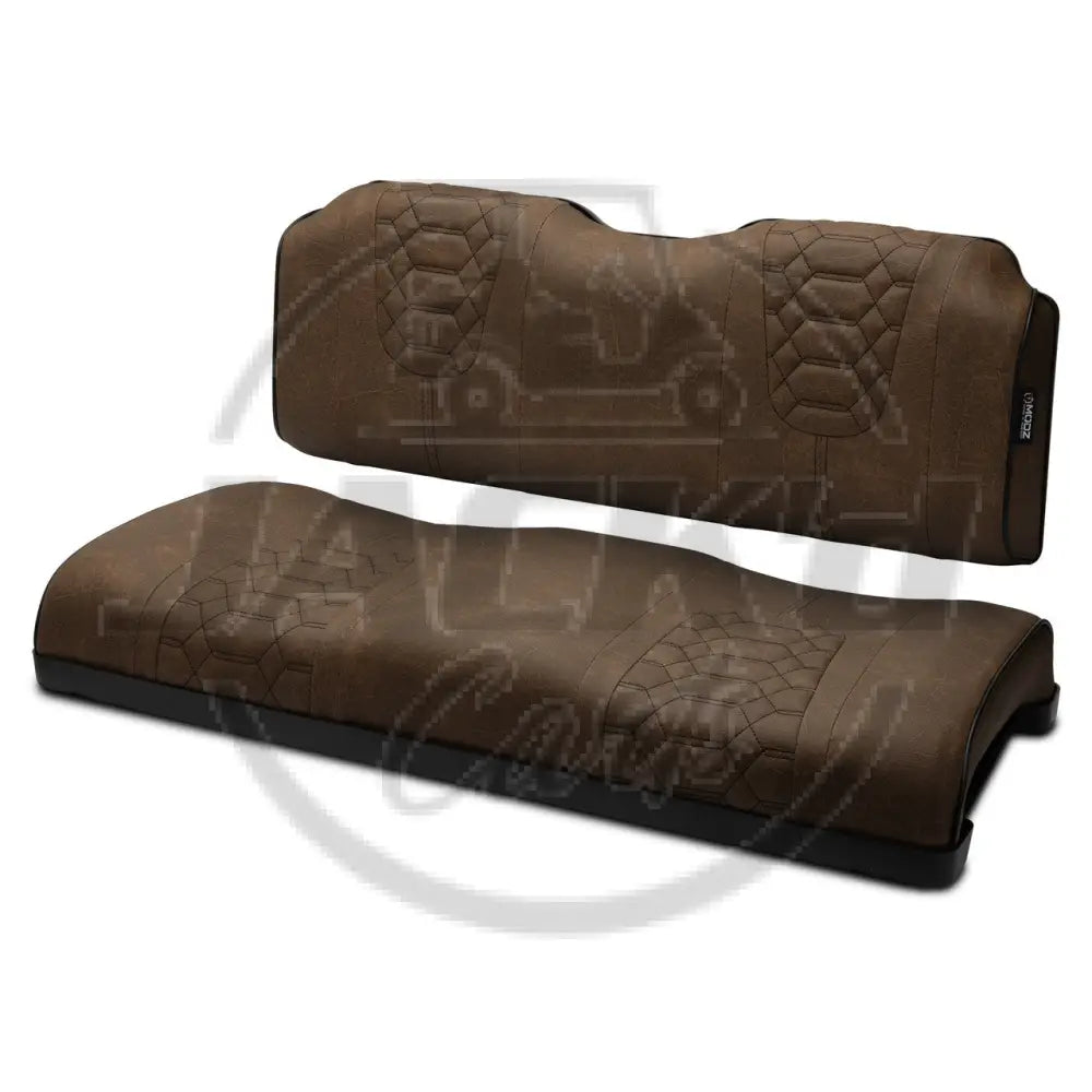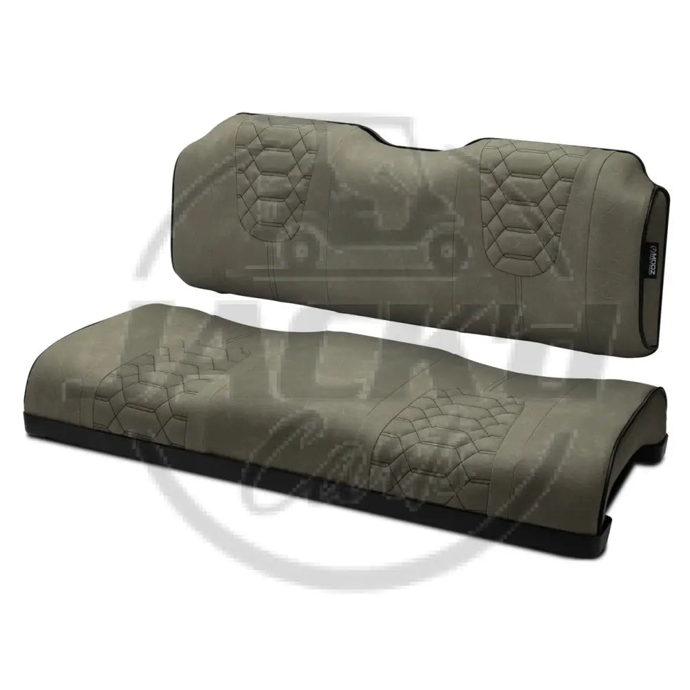 MODZ® Seat Covers for Evolution Golf Carts offer you an improved look to your cart with both front and rear covers available. Featuring our most popular “Cobra” pattern and 4 sophisticated color options, the refined look of these golf cart seats is accented by black piping for a sharp finish. High quality is ensured as these golf cart seat covers feature precision-cut, marine-grade vinyl that will last you for years to come. All of our seat covers are hand-sewn right here in America, on-site in our very own state-of-the-art facility. We’re happy to say that our MODZ® seat covers are compatible with the following Evolution golf cart models: